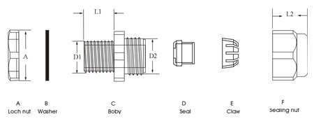 產(chǎn)品概述 · 螺牙規(guī)格:公制牙(METRIC) · 顏色種類:黑色及灰色 ·工作溫度: -40℃至100℃或瞬間可耐熟至120℃ ·安裝方式:直接安裝于相同牙規(guī)之機(jī)板上,由另一端將電纜穿入固定頭通孔內(nèi),再將迫緊螺帽上緊即可,免拆零件省時(shí)便利。 · 產(chǎn)品特性:特殊夾緊爪與夾緊圈之設(shè)計(jì),夾緊電纜范圍大,抗拉力特強(qiáng)并具保護(hù)電纜作用,可防水、防塵、鹽、耐弱酸、酒精、油、油脂及一般深劑。